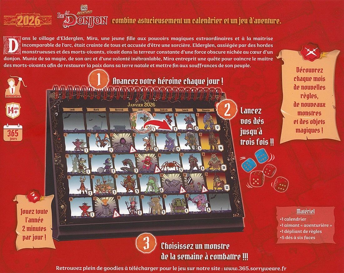 Bienvenue dans 365 Aventures - Le Donjon, un concept novateur qui réinvente la manière dont vous percevez et utilisez votre calendrier. Embarquez pour une aventure épique s’étalant sur toute une année à la découverte d’un donjon colossal. Jour après jour, guidez votre héros à travers les dédales obscurs de ce labyrinthe, explorant chaque étage et affrontant une multitude de monstres et de surprises inattendues. Notez votre score mensuel, enrichissez votre arsenal avec des objets magiques et débloquez de nouvelles règles au fil de votre progression.