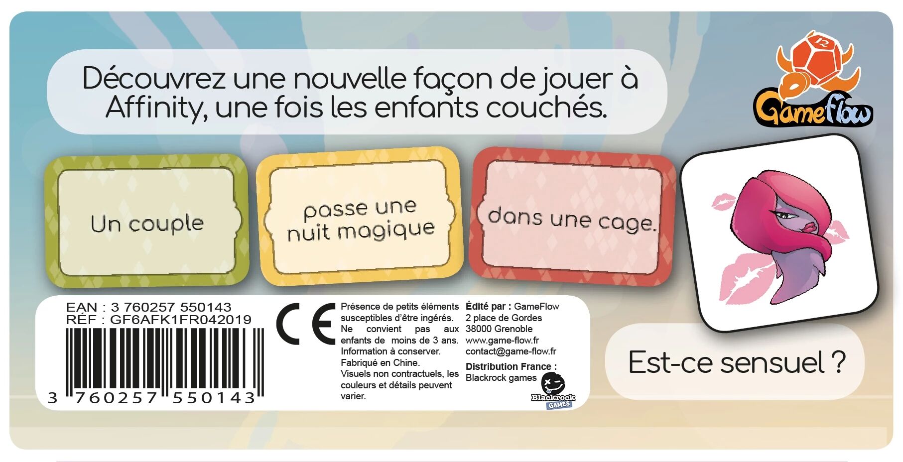 Attention, ce jeu s’adresse maintenant à un public averti ! Bien qu’aucune carte phrase ne pourra choquer un enfant, les interprétations et les doubles-sens seront bien plus adultes. De quoi pimenter de bonnes soirées entre adultes consentants !