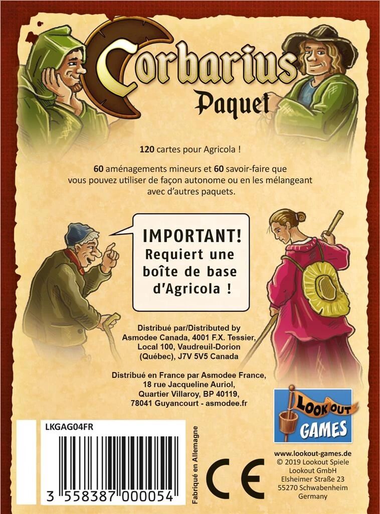 Avec Corbarius, vos stratégies dans Agricola gagnent en précision et en exigence gagne en profondeur et en exigence. Cette extension s’adresse à ceux qui souhaitent approfondir leur expérience avec des cartes plus techniques, capables de transformer en profondeur leur manière de jouer.