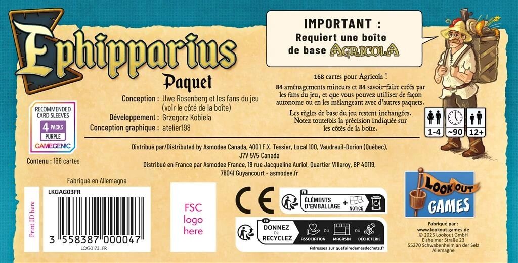 Avec l'extension Ephipparius, chaque partie d'Agricola devient un terrain d’expérimentation. La diversité des cartes et leur origine collaborative apportent une richesse unique, renouvelant constamment vos stratégies et votre manière d’aborder le jeu.