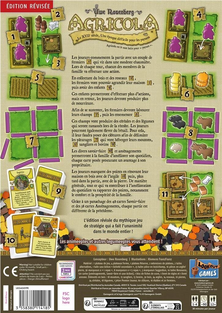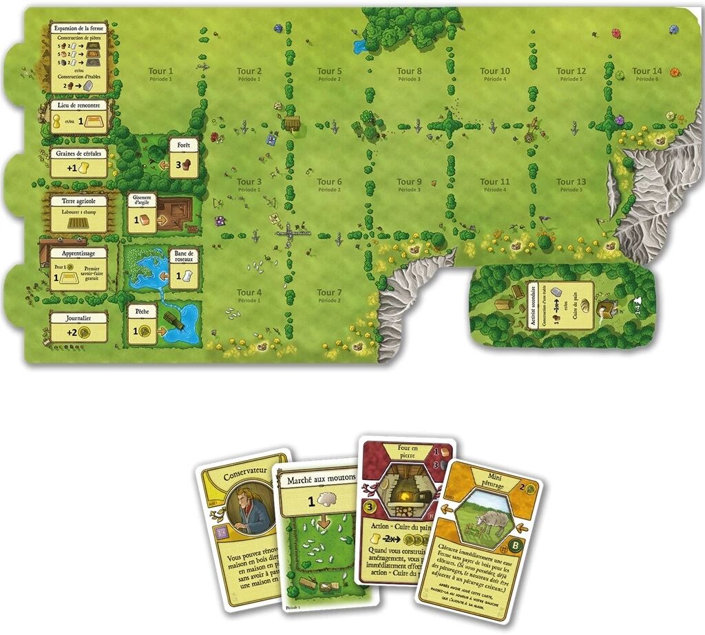 Le jeu Agricola se distingue également par la richesse de ses cartes Aménagements et Savoir-faire, qui renouvellent chaque partie et ouvrent de nombreuses stratégies. Vous pourrez spécialiser votre ferme, optimiser votre production ou adapter votre développement aux opportunités disponibles.