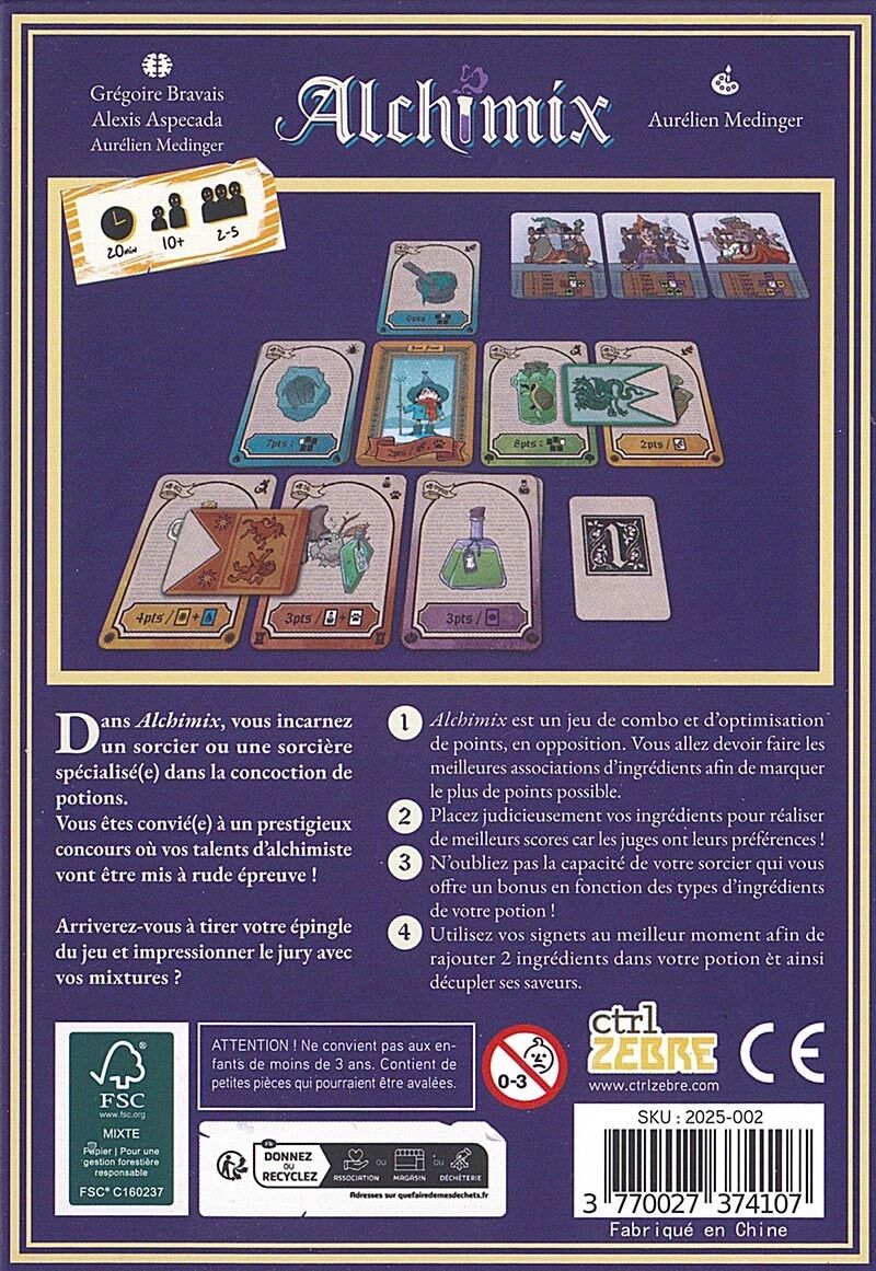 Rapide, tactique et malin, Alchimix bénéficie d'une belle profondeur stratégique en seulement 20 minutes de jeu. C'est un jeu idéal pour les amateurs de combos... saupoudrés d'une touche de magie !