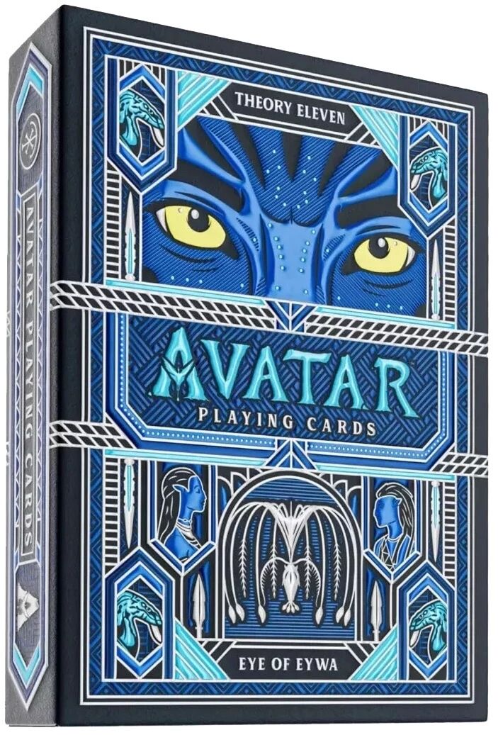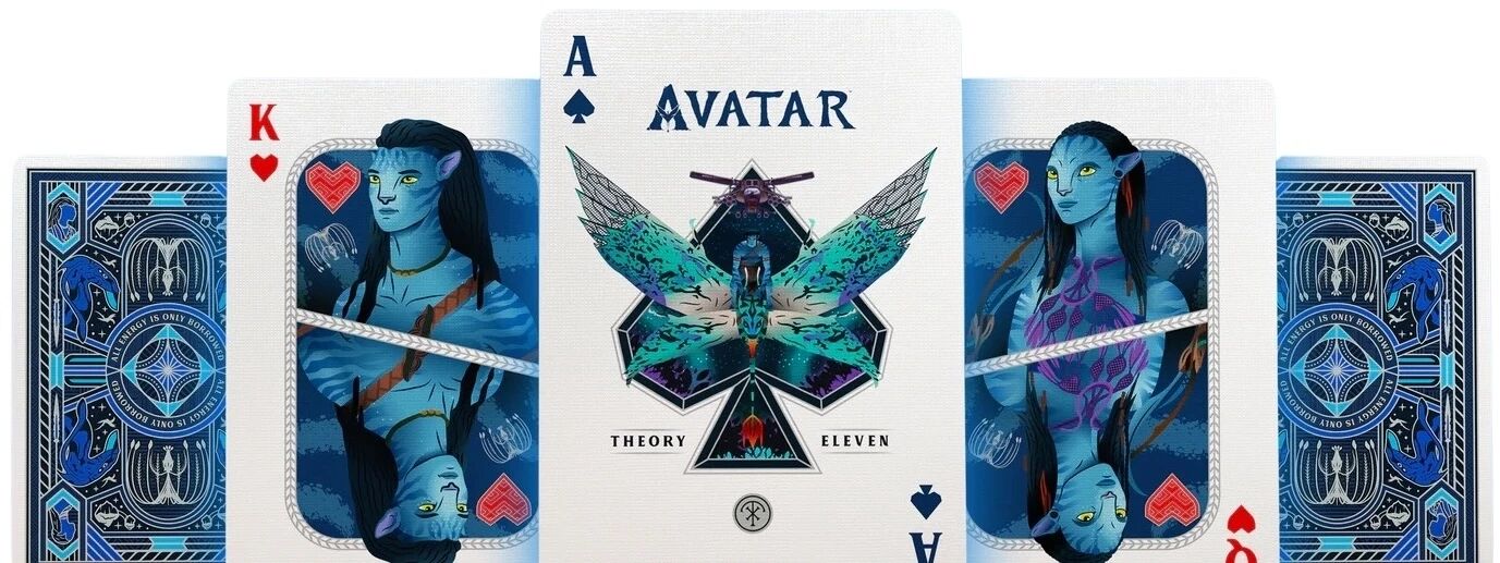 Le jeu de cartes Avatar met à l’honneur l’univers de Pandora à travers une édition travaillée dans ses moindres détails. Les teintes bleutées et argentées dominent l’ensemble, avec des reflets nacrés et un gaufrage précis sur l’étui, faisant apparaître les paysages emblématiques du film.