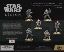 6 figurines en plastique (à monter, non peinte), 3 cartes Unité, 1 carte Commandement, 5 cartes Amélioration, 1 plaquette de pions divers, 1 feuillet d’instructions