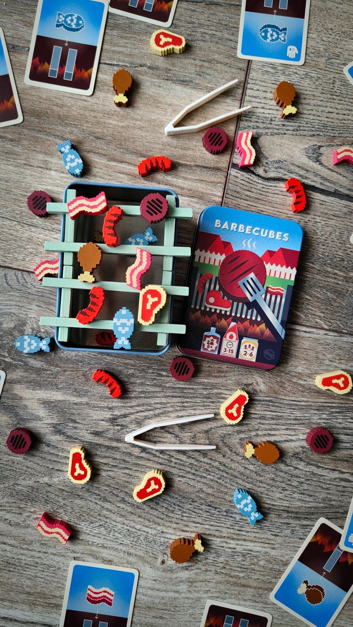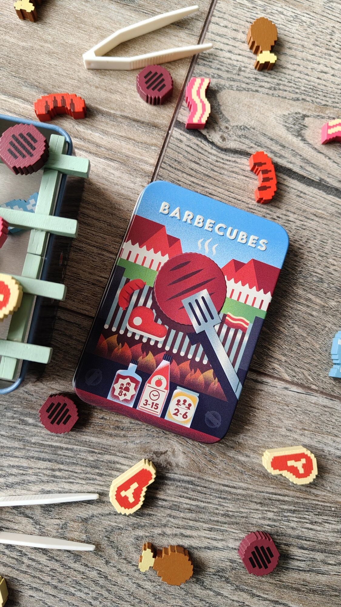 Barbecubes séduit par son matériel original, son format compact et sa prise en main immédiate. C’est un jeu parfait pour animer un apéritif ludique ou proposer un défi express à des joueurs de tous horizons. Avec son mélange de suspense et de fun, Barbecubes est un jeu de dextérité aussi simple à expliquer qu’à jouer ! Alors, serez-vous le roi du barbecue ?