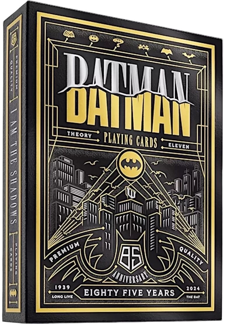 Le jeu de cartes Batman 85ème anniversaire met à l’honneur l’univers du Chevalier Noir à travers une édition travaillée dans ses moindres détails. Les couleurs noir, jaune et argent structurent l’ensemble, avec des finitions en feuille métallique et un gaufrage précis sur l’étui, marqué du sceau de Gotham.