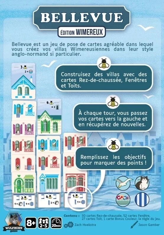 Cette Édition Wimereux reprend le principe du jeu Bellevue tout en offrant une ambiance balnéaire pleine de charme. Le plaisir reste intact : un jeu accessible, rapide à expliquer, mais qui demande sens de l’anticipation et capacité d’adaptation face aux cartes qui circulent.