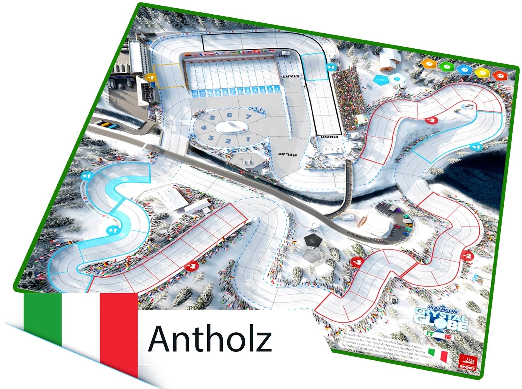 Nichée en altitude dans la vallée d’Anterselva, la célèbre Südtirol Arena d’Antholz est un lieu emblématique du biathlon mondial, accueillant compétitions internationales et Jeux Olympiques. Avec l'extension Antholz (Italie) - Double-pistes 3D pour le jeu Biathlon Crystal Globe, découvrez un plateau en relief qui transforme en profondeur votre expérience de jeu.
