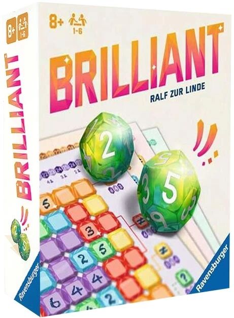 Dans le jeu Brilliant, chaque joueur dispose d’une grille personnelle composée de zones colorées avec, chacune, ses règles spécifiques. À chaque tour, deux dés sont lancés et leur résultat s’applique à tous les joueurs simultanément. Chacun choisit alors l’un des deux chiffres et l’inscrit sur sa grille, en le plaçant orthogonalement à une case déjà remplie correspondant à la valeur de l’autre dé.
