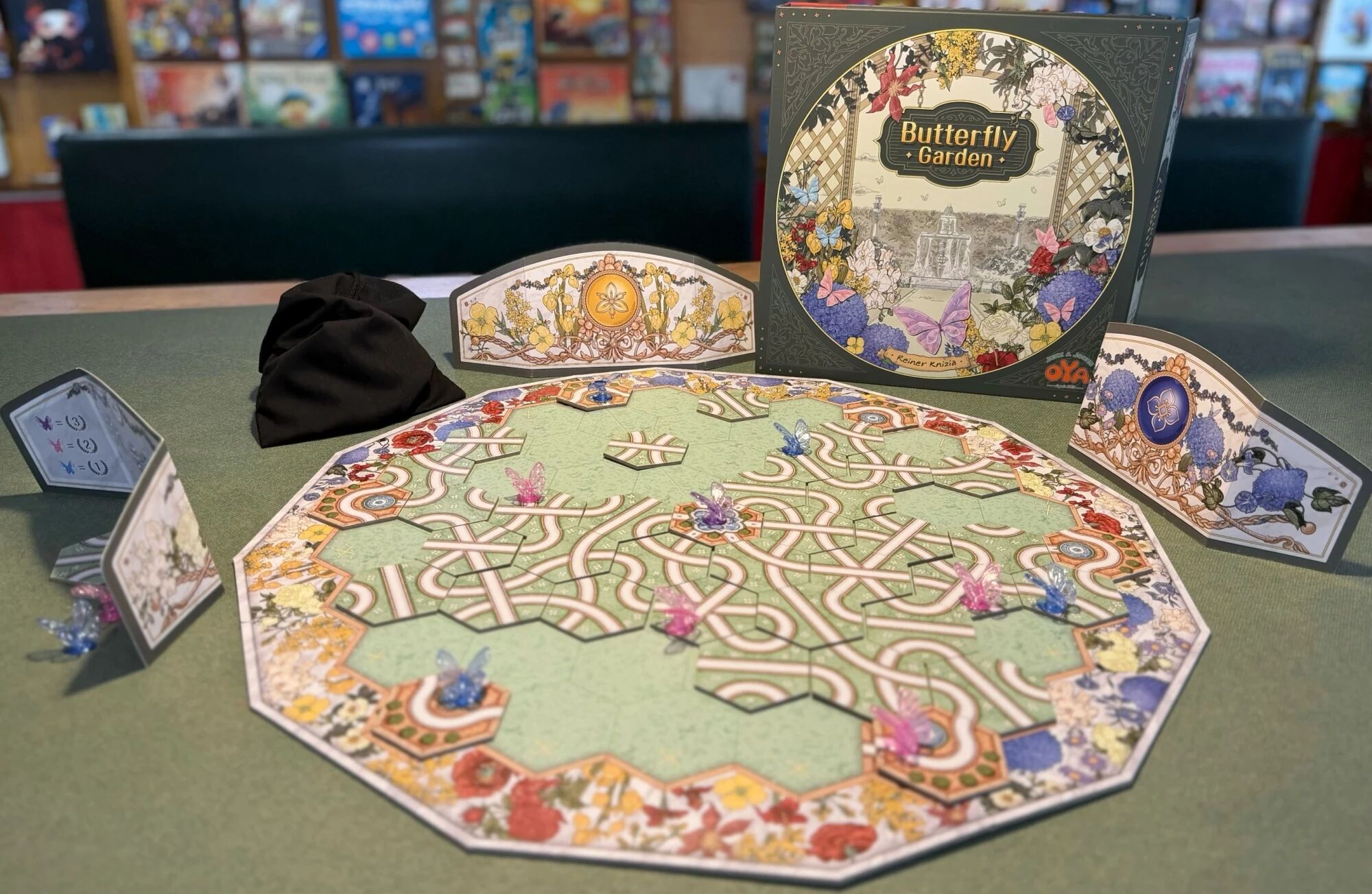 Dans Butterfly Garden, toute la richesse du jeu repose sur une mécanique simple mais très tactique. Les chemins s’entrecroisent, les trajectoires s’anticipent et les opportunités évoluent en permanence. À 2 joueurs, l’affrontement est précis et stratégique. À 3 ou 4 joueurs, les jardins partagés introduisent une dimension de diplomatie, d’opportunisme et de négociation subtile.