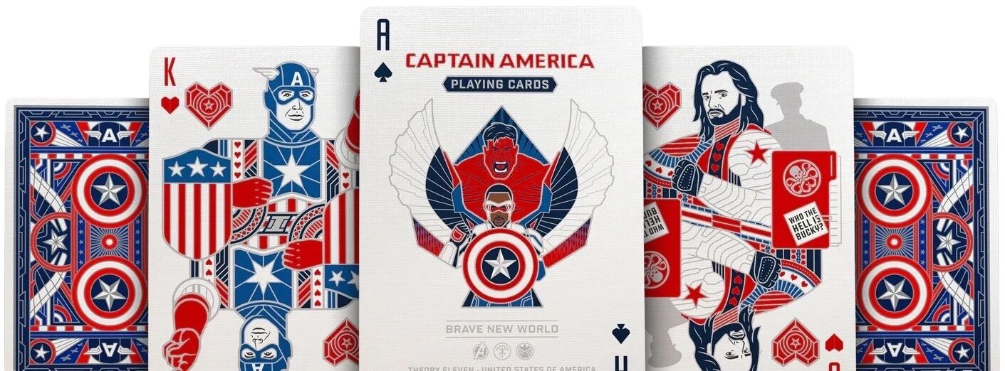 Le jeu de cartes Captain America met à l’honneur l’univers Marvel à travers une édition travaillée dans ses moindres détails. L’identité visuelle s’appuie sur les codes emblématiques du héros, avec une mise en avant des personnages majeurs comme le Soldat de l’Hiver, Peggy Carter ou encore Baron Zemo.