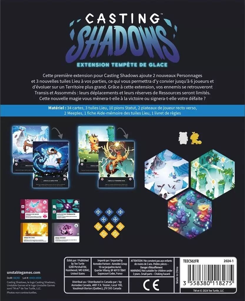 Le pack d'extension Tempête de Glace pour 5 à 6 joueurs ajoute 2 nouveaux personnages, 3 nouveaux lieux, de nouveaux sorts/contresorts/compagnons et de nouvelles mécaniques au jeu (en particulier, les effets de gel et d'étourdissement, c'est pourquoi il est livré avec des jetons d'effet de statut).
