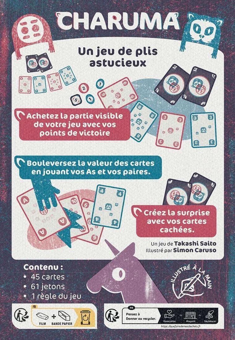 Dans le jeu Charuma, chaque manche commence par une phase d’enchères originale qui renouvelle complètement l’approche du jeu de plis.