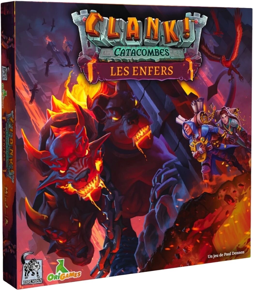 Avec l'extension Les Enfers pour le jeu Clank ! Catacombes, l’aventure prend une tournure bien plus sombre. Cette extension vous entraîne au-delà des Catacombes, dans une seconde zone de jeu située sous le plateau principal : les Enfers. Grâce à des échelles et des toboggans, vos aventuriers passent d’un monde à l’autre, alternant exploration classique et plongées périlleuses dans les profondeurs infernales.