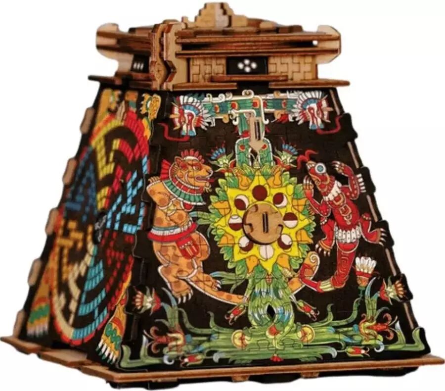 Cluepuzzle - The Aztec Pyramid of The Sun combine de manière unique le puzzle traditionnel avec les mécanismes d'un escape box. Le but du jeu est d'ouvrier la boite en assemblant plus de 200 pièces de puzzle en bois, en découvrant des indices cachés et en résolvant des tâches logiques tout au long du parcours.