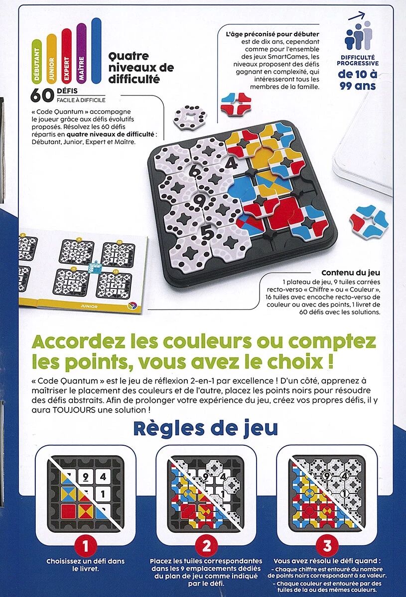 Code Quantum est le jeu de réflexion 2-en-1 par excellence ! D'un côté, apprenez à maitriser le placement des couleurs et de l'autre, placez les points noirs pour résoudre des défis abstraits.