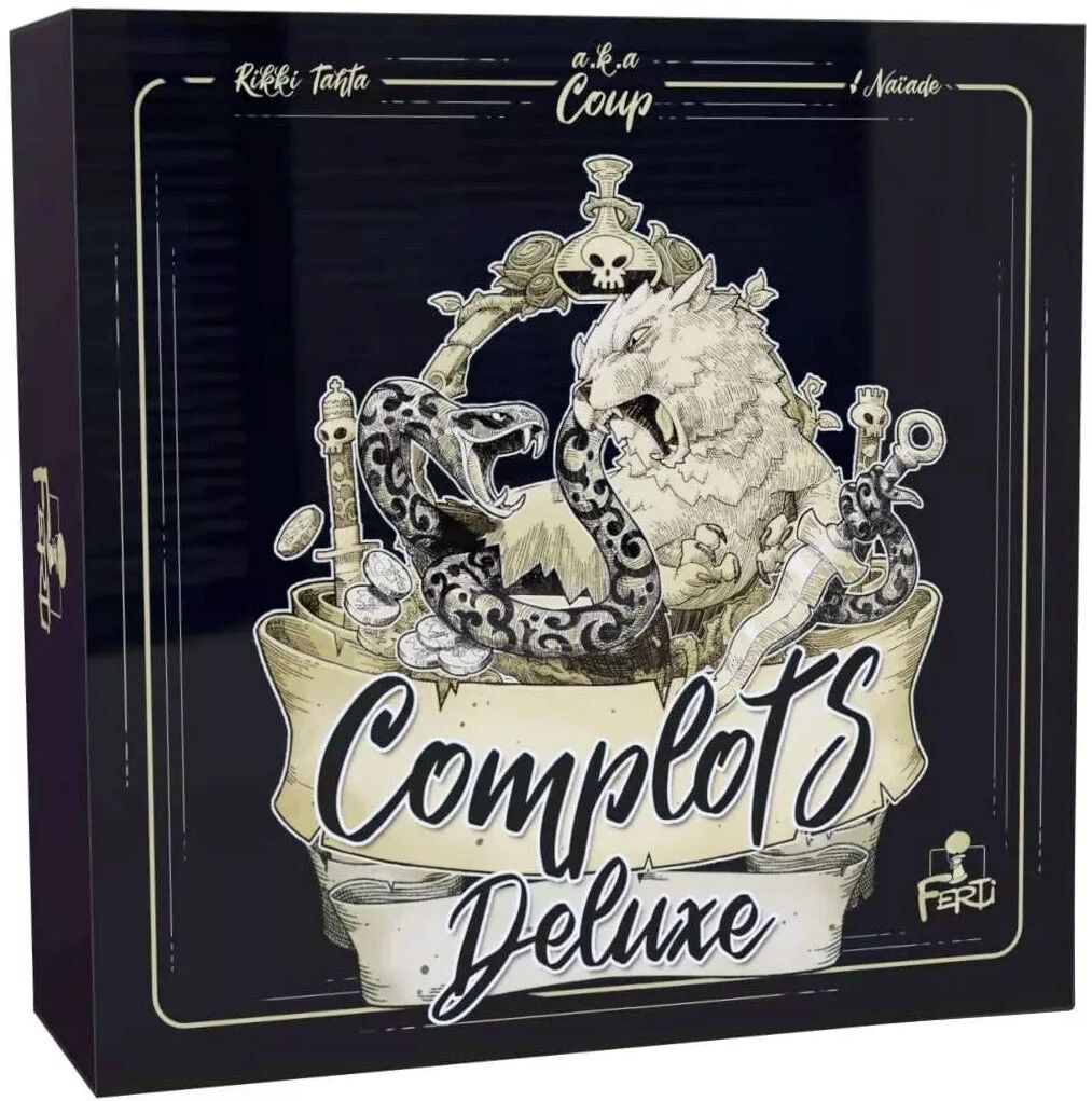 Complots est la réédition de Coup avec des dessins par Naïade, un nouveau personnage, l'inquisiteur et des règles spéciales pour jouer à deux. Il ne doit en rester qu'un ! Serez vous le dernier