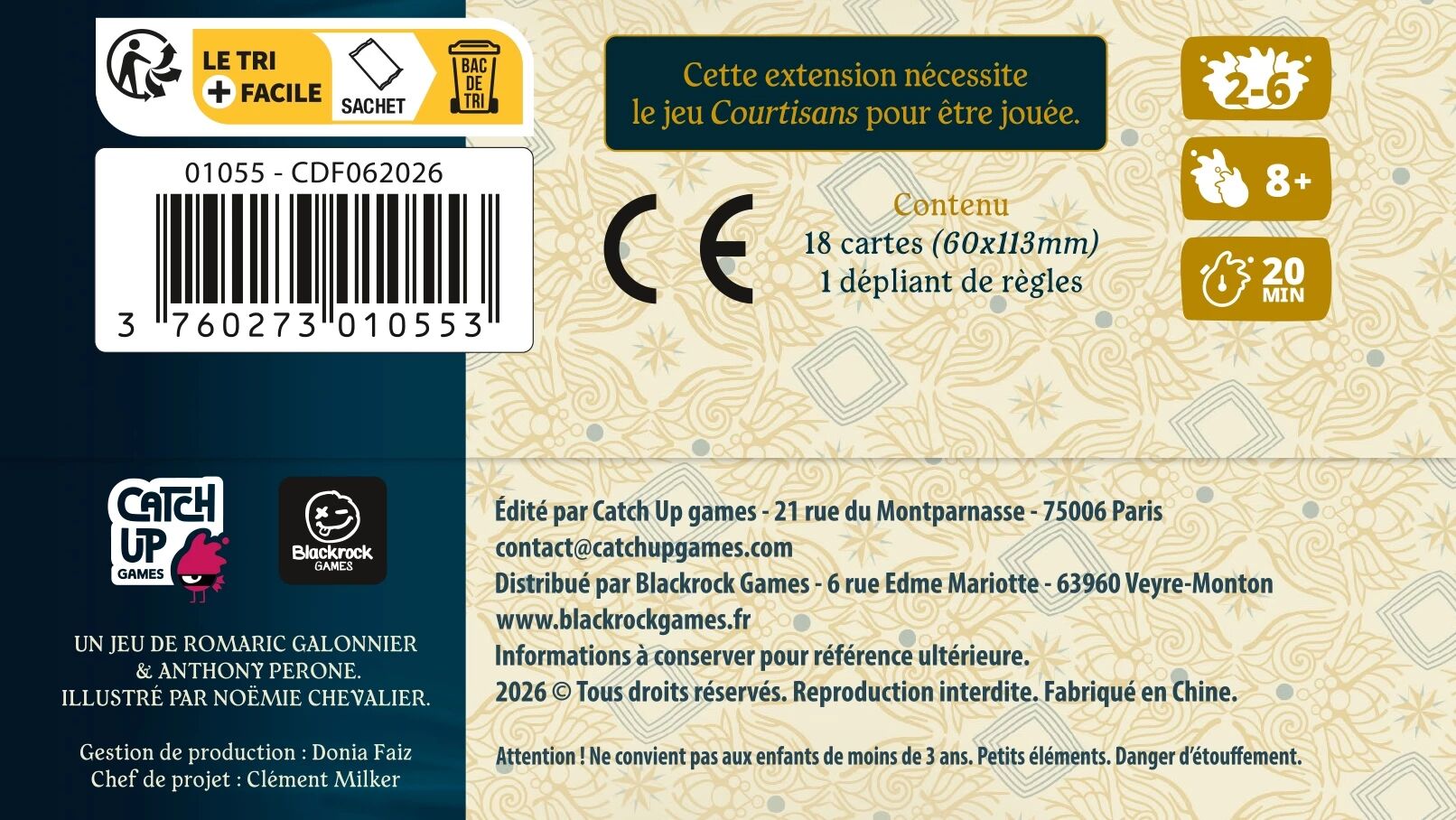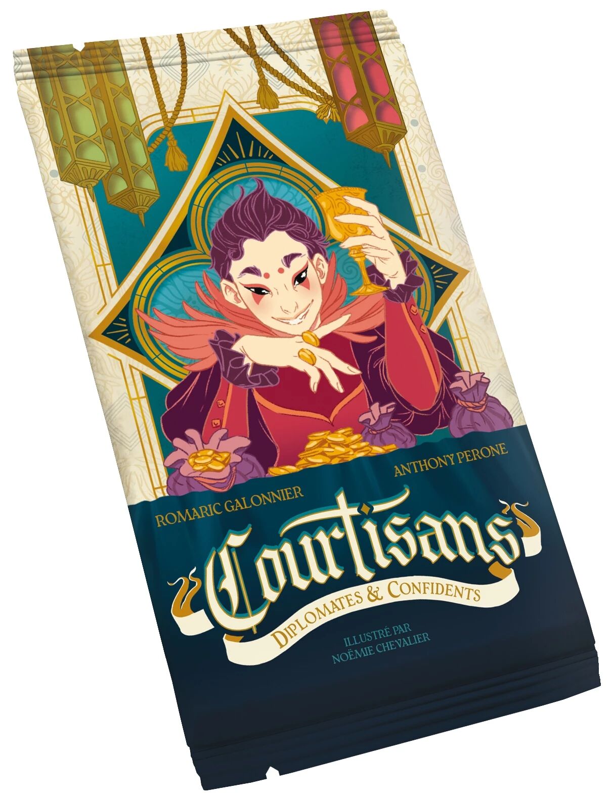 1 booster contenant 18 cartes Courtisan, 1 livret de règles.