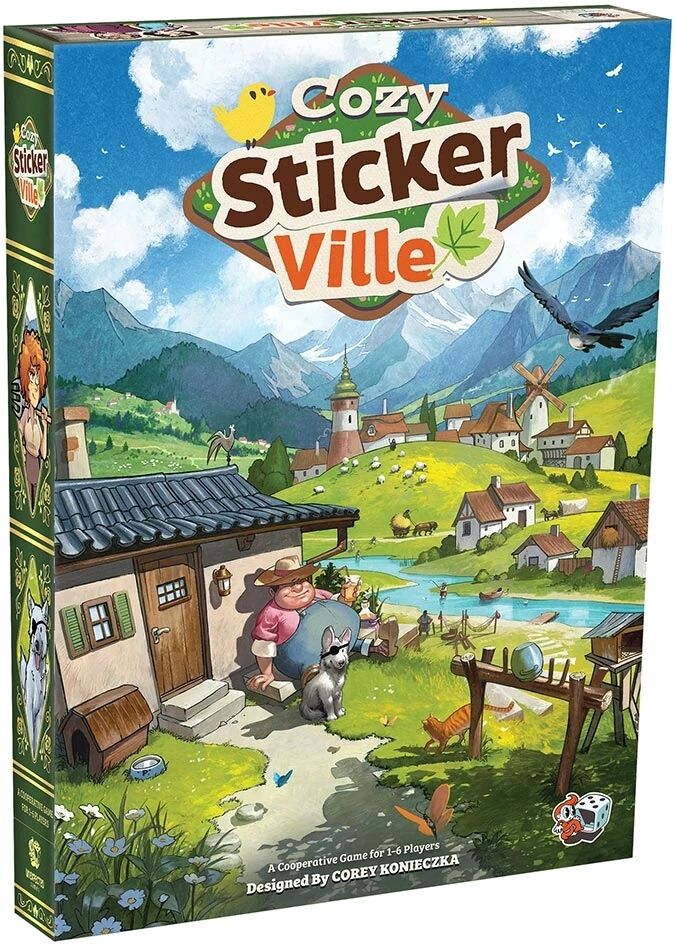 Cozy Stickerville est un jeu de simulation coopératif et narratif pour 1 à 6 joueurs accessible dès 8 ans. Dans ce jeu de société, vous construisez collectivement un village à l’aide de stickers collés sur une carte commune, prenez des décisions marquantes et vivez une histoire évolutive sur plusieurs parties, sans condition de défaite. Ce jeu relaxant est rythmé par vos discussions et vos échanges afin de réussir, tous ensemble, à créer une ferme où il fera bon vivre.