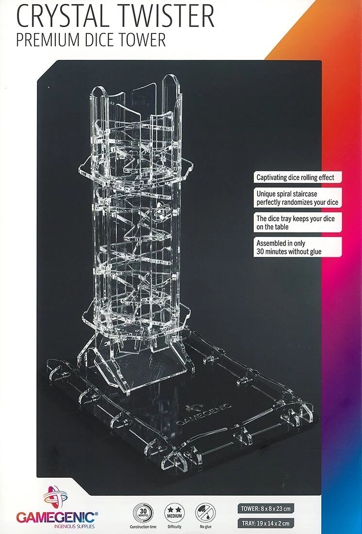 La Crystal Twister Dice Tower apportera une expérience de lancer de dés véritablement magique et captivante à vos parties. Regardez vos dés dévaler son escalier en spirale, écoutez le fabuleux son qui les accompagne et enchantez tous les joueurs autour de la table.
