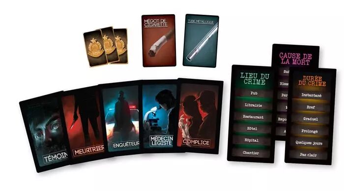 Le médecin légiste devra mener les enquêteurs sur la bonne piste en leur donnant les meilleurs indices à l’aide des différentes tuiles : le lieu du crime, l’état du corps, la cause de la mort, les vêtements de la victime… sont autant d’éléments qui pourront aider l’enquête à avancer. Mais il faudra être vigilant : le meurtrier fera tout pour mettre des bâtons dans les roues des enquêteurs et faire accuser un innocent à sa place !