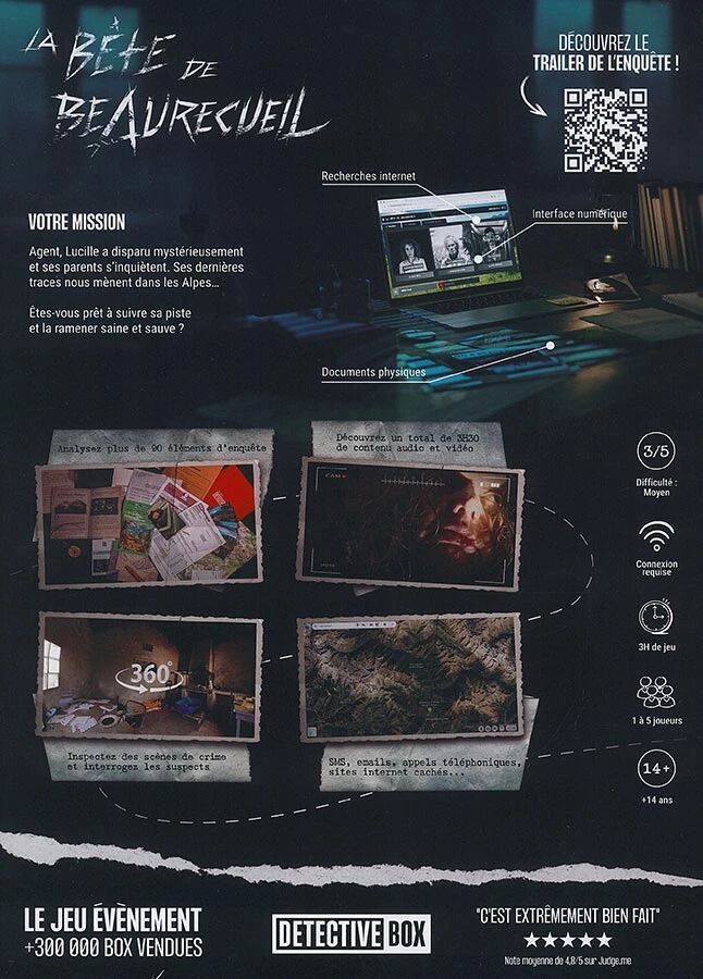 Dans Detective Box – Short Stories : La Bête de Baurecueil, une affaire inquiétante secoue un petit village alpin. Lucille a disparu sans laisser de trace et les habitants murmurent l’existence d’une étrange créature rôdant dans la région. Légende ou réalité ? À vous de faire la part des choses.