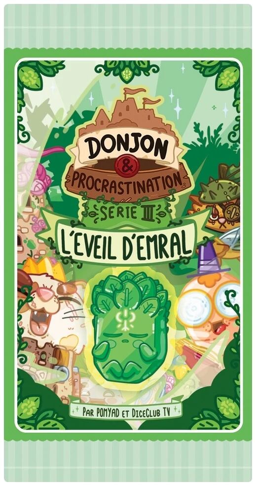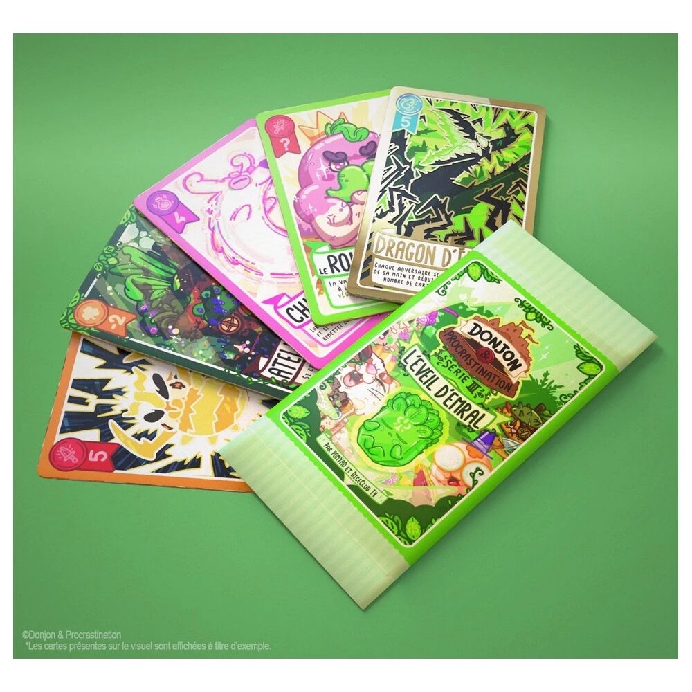 La Série 3 : L’Éveil d’Emral enrichit l’univers de Donjon & Procrastination et marque une montée en puissance dans l’univers du jeu, avec des cartes aux effets plus affirmés et des interactions encore plus impactantes. Cette extension introduit des mécaniques qui renforcent la tension des duels et accentuent les rebondissements.