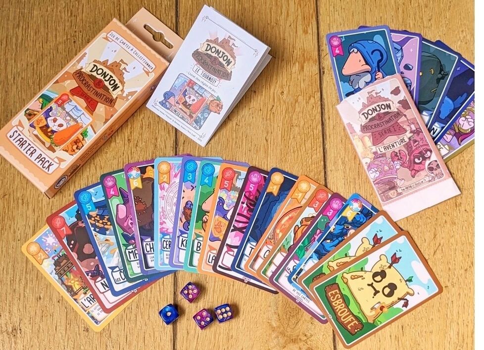 Avec son format compact, ses parties courtes et son univers fantasy décalé, Donjon & Procrastination s’adresse aux joueurs qui recherchent un jeu de cartes à collectionner original, doté d’une vraie identité, et surtout très accessible grâce à des règles simples permettant d’y jouer aussi bien entre amis qu’en famille.