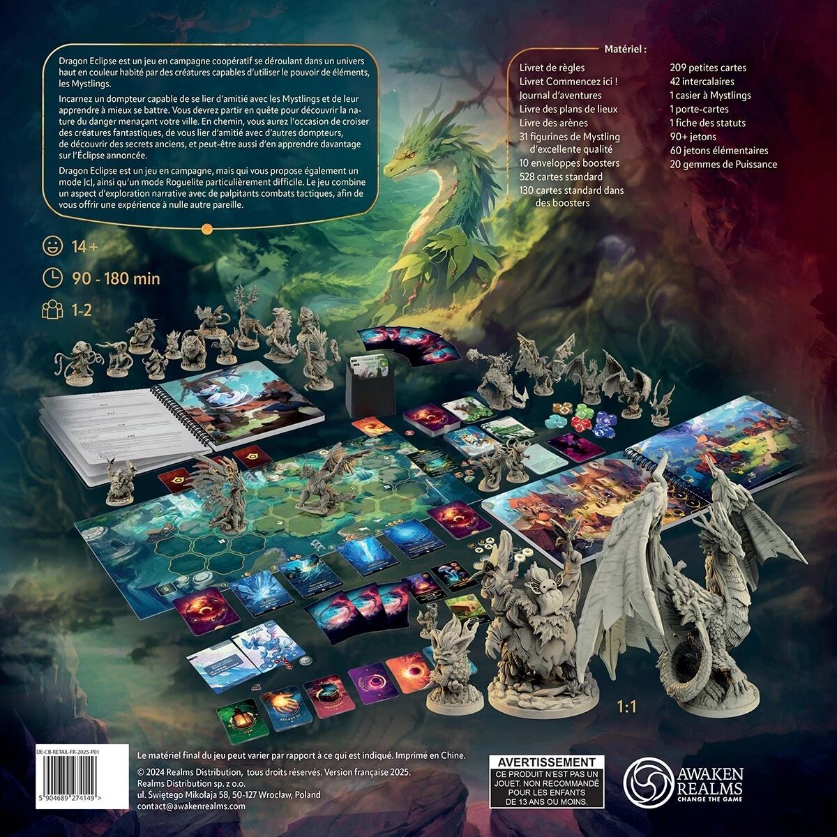 Le jeu Dragon Eclipse (Édition Retail + figurines) vous plonge dans un univers fantastique où vous incarnez un dresseur de Mystlings, de mystérieuses créatures magiques à entraîner, faire évoluer et envoyer au combat. Le jeu propose une expérience riche et modulable grâce à trois modes distincts : une campagne narrative immersive, un mode arène compétitif et un mode roguelite centré sur la survie et l’optimisation.