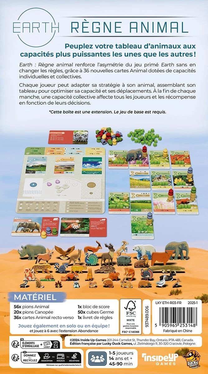 Entrez dans Règne Animal, la nouvelle extension pour le jeu multi-récompensé Earth : Du plus profond des forêts au plus haut des montagnes, la faune de la Terre est aussi variée que les paysages qu’elle habite. Chacune de ces espèces joue un rôle dans la fresque du vivant et participe à faire de notre planète un monde aussi extraordinaire que les créatures qui le peuplent.