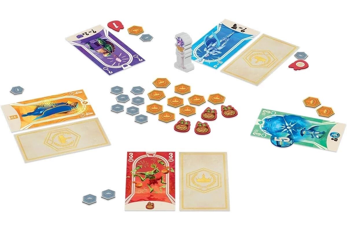À chaque manche, tous les joueurs choisissent simultanément deux cartes de leur main et les placent face cachée devant eux. Une première révélation partielle a lieu, puis le joueur possédant le pion Initiative décide laquelle de ses cartes il engage réellement dans l’arène. Cette décision cruciale influence l’ordre du jeu et déclenche parfois des pouvoirs immédiats, avant que l’initiative ne passe à un autre joueur. Lorsque toutes les cartes sont engagées, le combat est résolu : les champions les plus puissants remportent des jetons Butin, tandis que les suivants se partagent les récompenses secondaires.