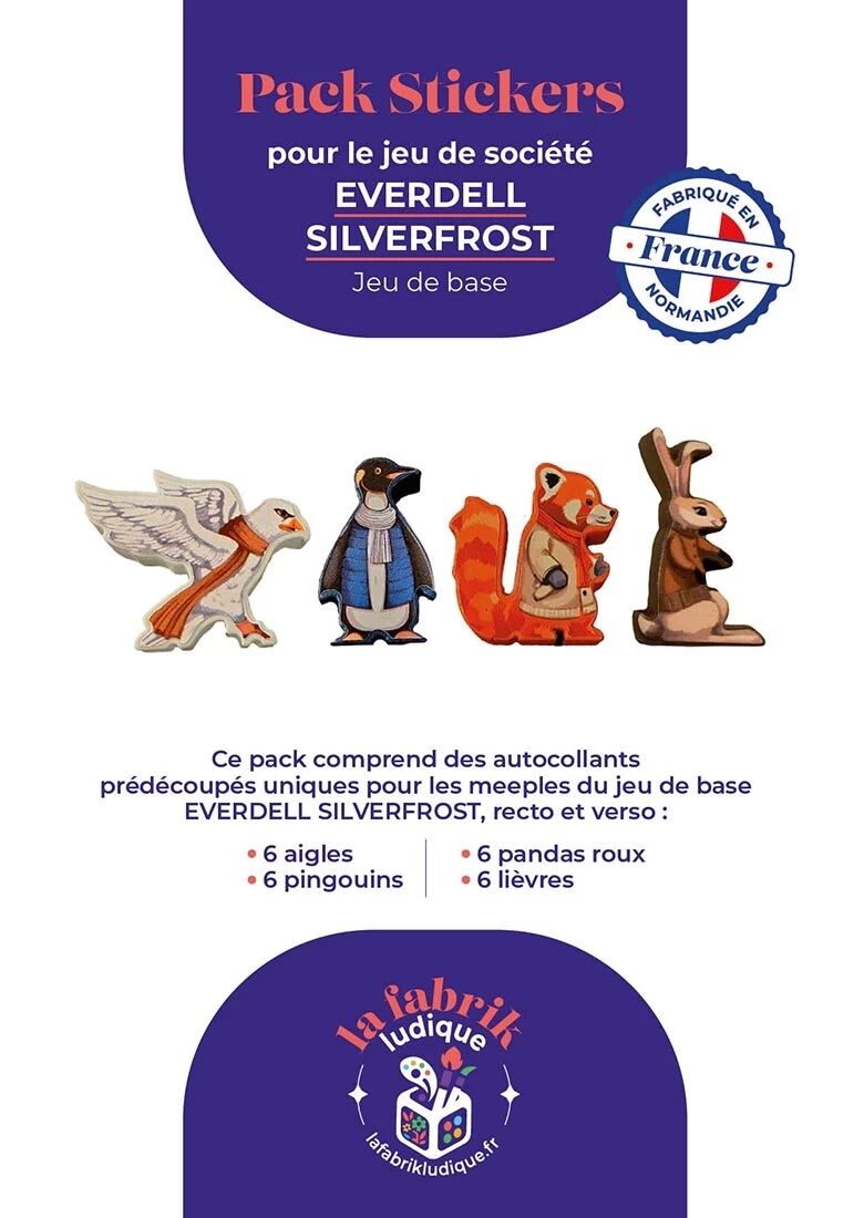 Ajoutez du style et de la lisibilité à vos parties de Everdell Silverfrost grâce à ce pack de stickers conçu pour le jeu ! Chaque autocollant vient embellir les pions en bois pour une immersion renforcée.