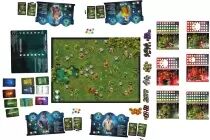 39 personnages, 157 cartes, 6 plateaux Personnage avec deux roues, 9 plateaux Ennemi recto verso, 8 plateaux Vie recto-verso, 7 plateaux de jeu recto verso, 4 plateaux Manche recto verso, 4 Compteurs Folie, 18 planches de sacs/étuis, 290+ jetons, 20 tuiles double face, 24 socles en plastique colorés, 24 cubes en bois, 12 dés en plastique colorés, 1 tour à dés et un livret de règles.