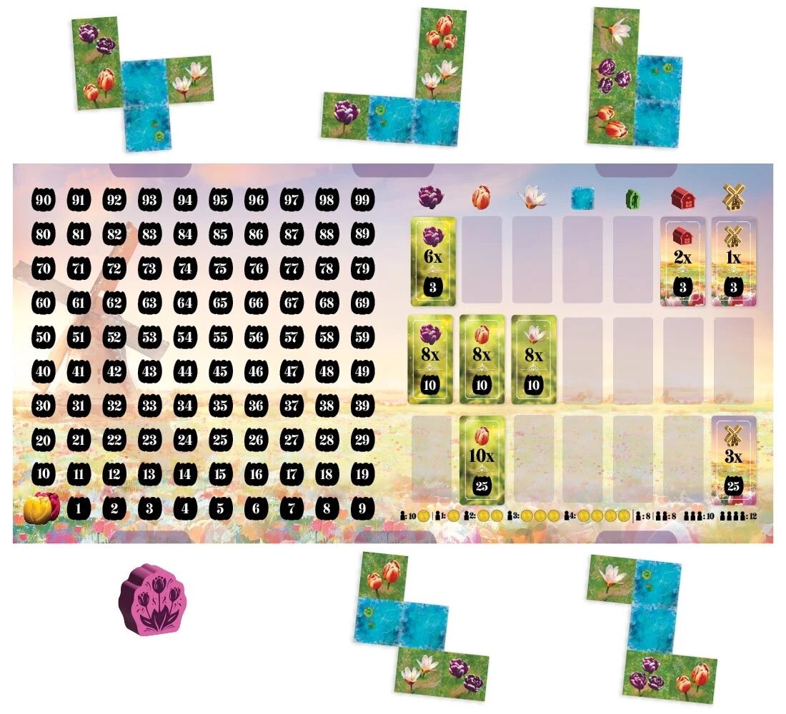 Dans le jeu Frosted Blooms, vous incarnez un horticulteur ambitieux cherchant à créer le plus harmonieux et le plus prestigieux jardin de tulipes des Pays-Bas. La partie se déroule sur 10 manches, chacune rythmée par une succession d’actions simples mais profondément stratégiques.