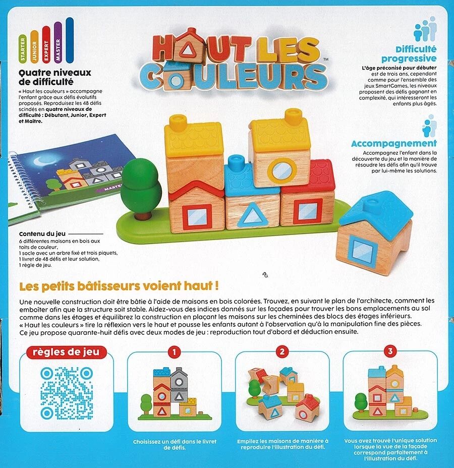 Avec ses blocs en bois robustes et ses 48 défis évolutifs, Haut les Couleurs accompagne les enfants, de 3 à 7 ans, dans le développement de leur motricité fine et de leur raisonnement, tout en leur offrant la satisfaction de voir leur maison prendre forme sous leurs yeux.