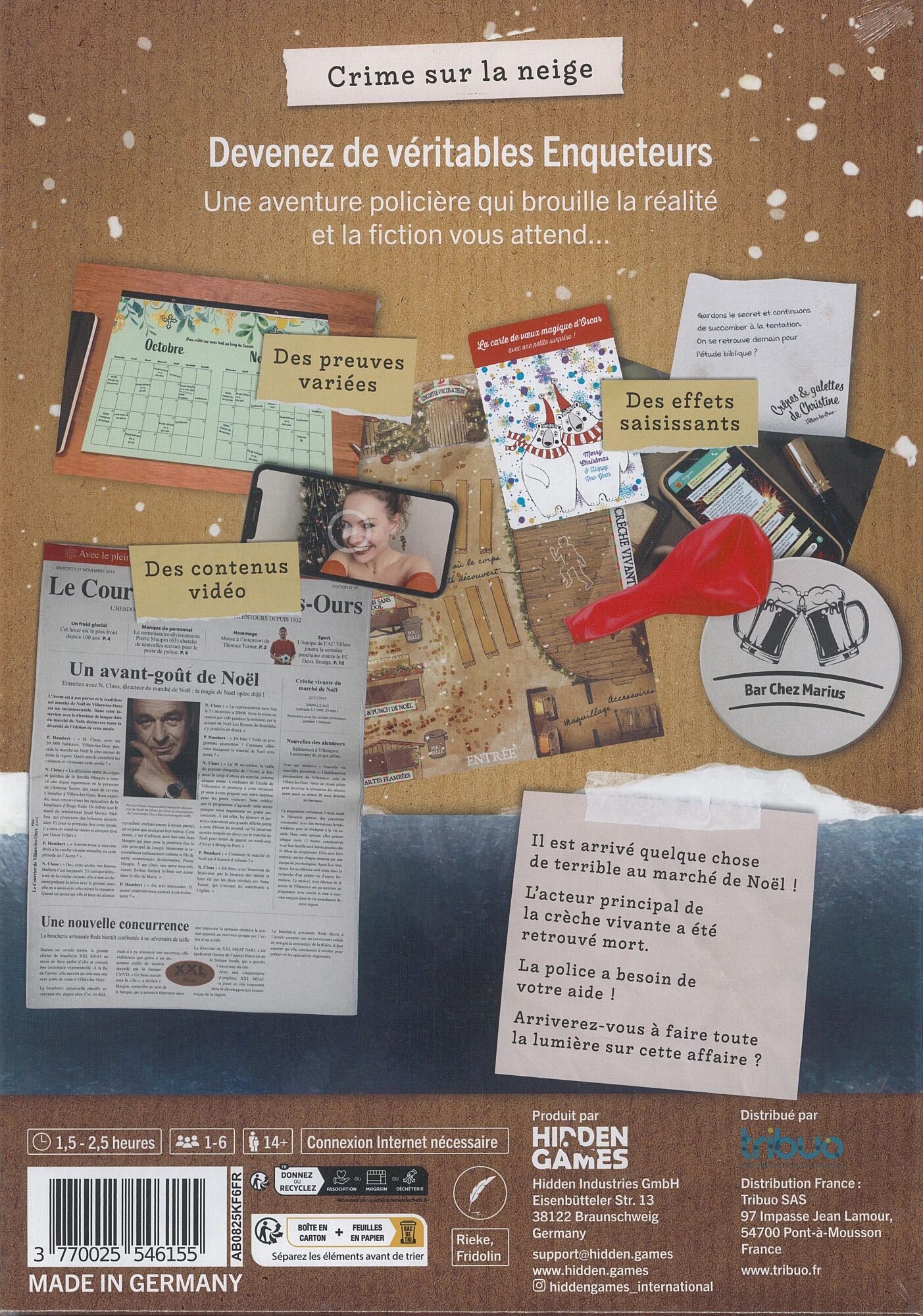 URGENT : Drame au Marché de Noël ! Le corps de l'acteur principal de la crèche vivante a été découvert sans vie. Un terrible secret se cache derrière cette fête. La police a besoin de votre aide immédiatement. Le temps presse : menez l'enquête et rétablissez la vérité !