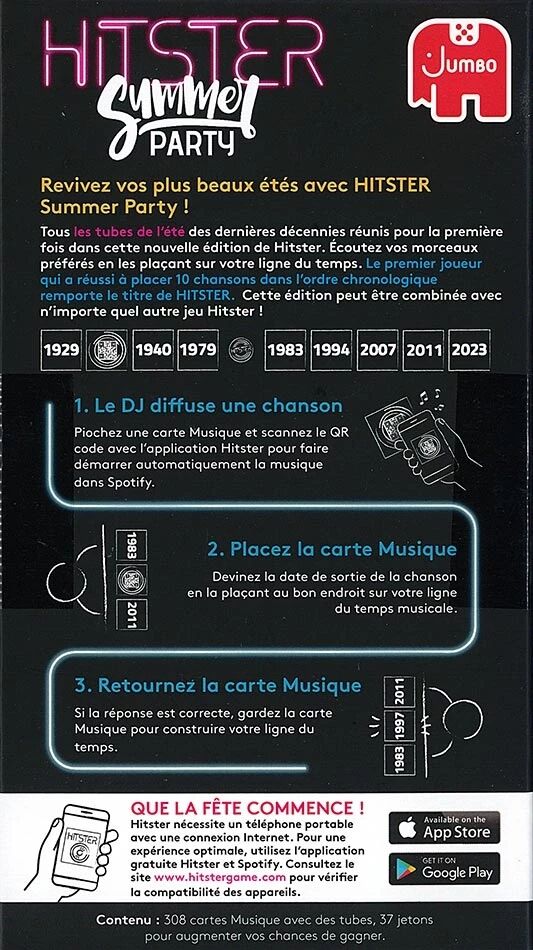 Comme dans les autres Hitster, les tubes doivent être placés à tour de rôle dans l’ordre chronologique pour former une timeline musicale et recréer un voyage dans le passé.
