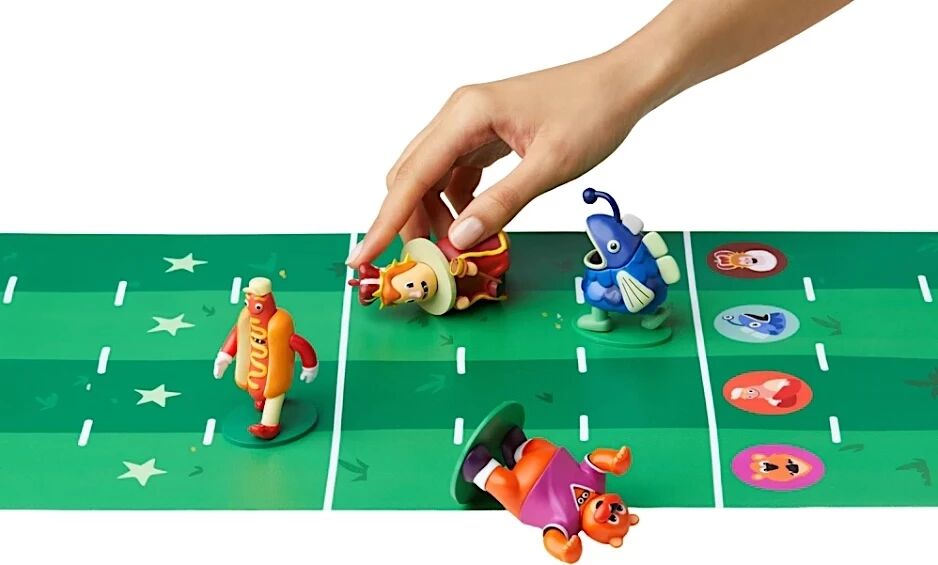 Avant la course, chacun ajoute secrètement une carte au paquet de course. C’est votre unique chance d’influencer le résultat ! Puis on révèle les cartes une à une tandis qu'un joueur déplace les figurines sur la piste en tissu. Les mascottes avancent, reculent, tombent, se retournent, se percutent, sortent des limites… et peuvent même être disqualifiées !