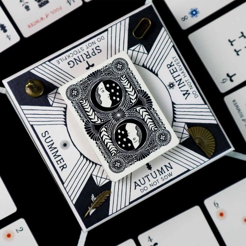 À chaque partie, le plateau en tissu est divisé en quatre champs, et la boîte dans laquelle le jeu entre est également un composant du jeu : elle se trouve au centre du plateau et définit les saisons pour chaque champ, ce qui affecte les actions qui peuvent être effectuées dans chaque champ.