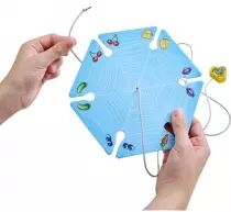 Tous en même temps, les enfants aident les araignées à les atteindre en tissant le plus habilement possible leur toile. Mais attention !