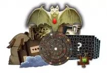 4 sachets de puzzles de 88 pièces chacun, 14 documents Énigme, 10 objets étranges, 1 disque Décodeur en 4 parties, 1 Bouton en 2 parties et 1 livret de règles.