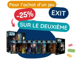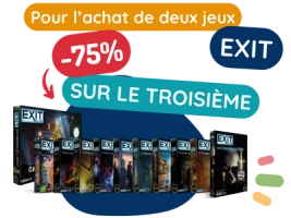 Exit est un jeu qui reprend les sensations des "escape games". Muni d'indices, de matériel et d'un décodeur, vous aurez pour mission de sortir du jeu le plus rapidement possible. Plus qu'un jeu : une expérience unique et immersive dans laquelle vous devrez faire preuve de coopération, d'observation et de logique.