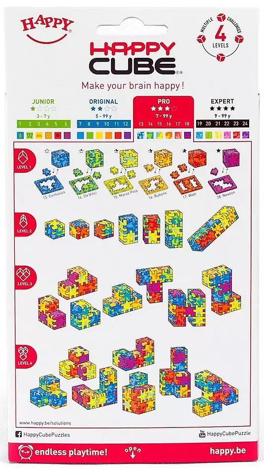 Le Happy Cube Pro comprend 6 puzzles de cubes en mousse différents mesurant 4cm3.