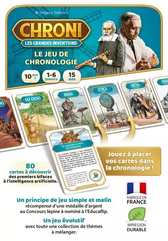 Idéal pour une utilisation de jeu entre amis ou pour améliorer sa culture générale. Les grandes inventions dispose d’un niveau de difficulté accessible aux plus jeunes et peut être conseillé aux personnes à la recherche d’un jeu familial.