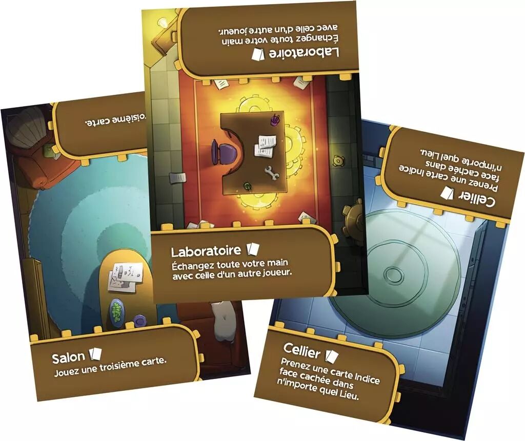 Chaque joueur possède une identité secrète avec son propre symbole de score et un emplacement pour marquer des points bonus. Placer des indices autour de la maison rapporte des points, mais si vous en placez trop, les autres découvriront qui vous êtes. Ce qui leur rapportera des points de devinette supplémentaires.