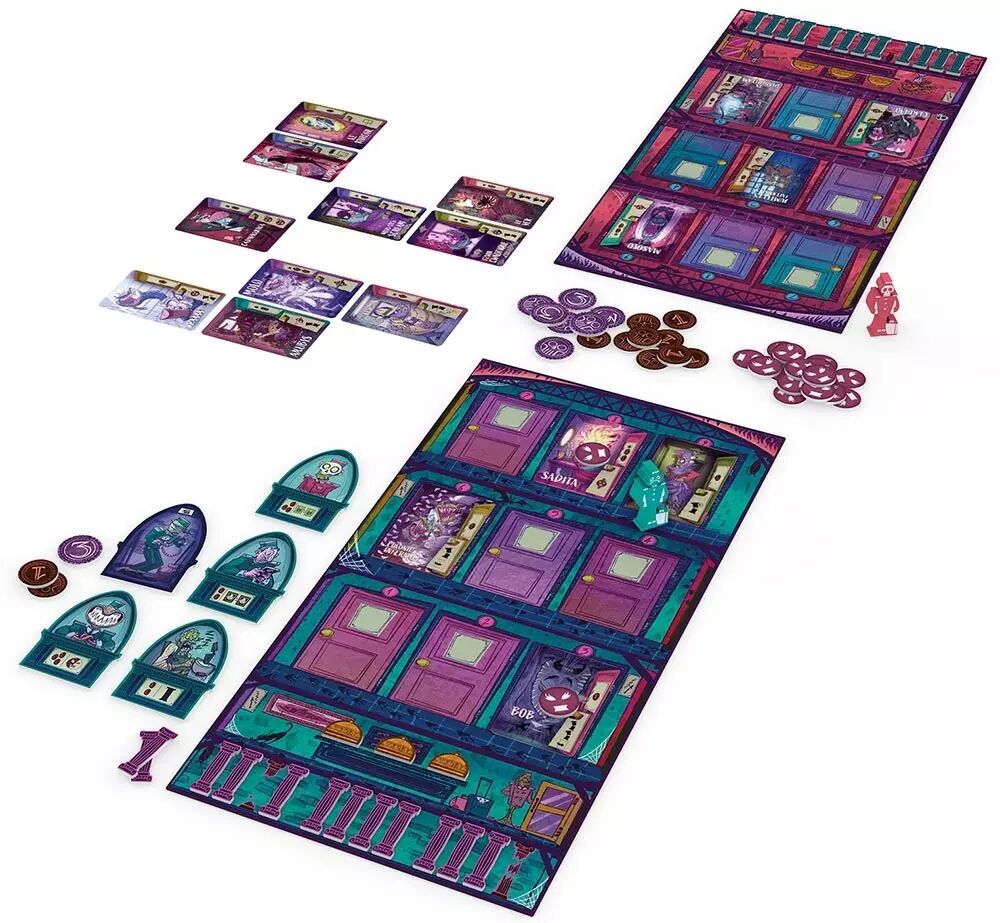 Accueillez des hôtes infernaux et engagez des grooms pour les servir. Choisissez de ne pas satisfaire vos clients (et d’en accepter les effets négatifs) ou de les satisfaire (et d’en accepter également les effets, négatifs, mais différents). Quand les hôtes auront saccagé les lieux avec méthode et application, le dernier hôtel encore debout remportera la partie. Simple, vous voyez ? Qu’est-ce qui pourrait mal tourner ?