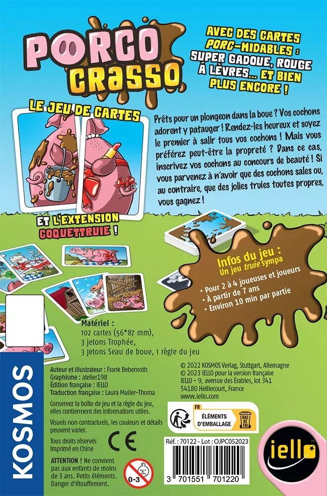 Dans le jeu Porco Crasso, votre but est d’avoir des cochons sales Les règles sont simples : vous disposez de 3 cartes et vous les jouez pour encrasser vos cochons… et nettoyer ceux des autres !