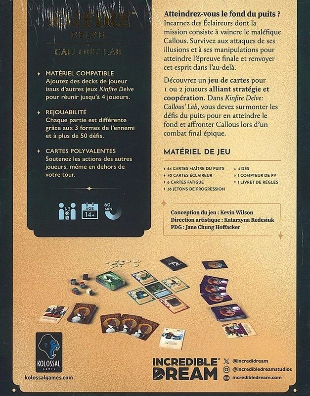 Callous' Lab est composé de quatre cartes de défi, avec Callous lui-même au milieu. Lorsqu'un défi est vaincu, un autre prend sa place, avec 57 cartes défi au total. Lorsque vous faites face aux défis du Puits, vous pouvez jouer une carte de compétence de votre main uniquement lorsqu'elle correspond à la couleur de la carte de défi. Par exemple, si vous faites face à une carte de défi rouge, vous ne pouvez jouer qu'une carte de compétence rouge. . Certaines cartes ont deux couleurs et d'autres sont blanches, c'est-à-dire sauvages. Si la carte que vous jouez ne réussit pas le défi, vous pourrez y ajouter un peu de progression et tenter à nouveau, même si vous pourriez subir une pénalité pour cela.