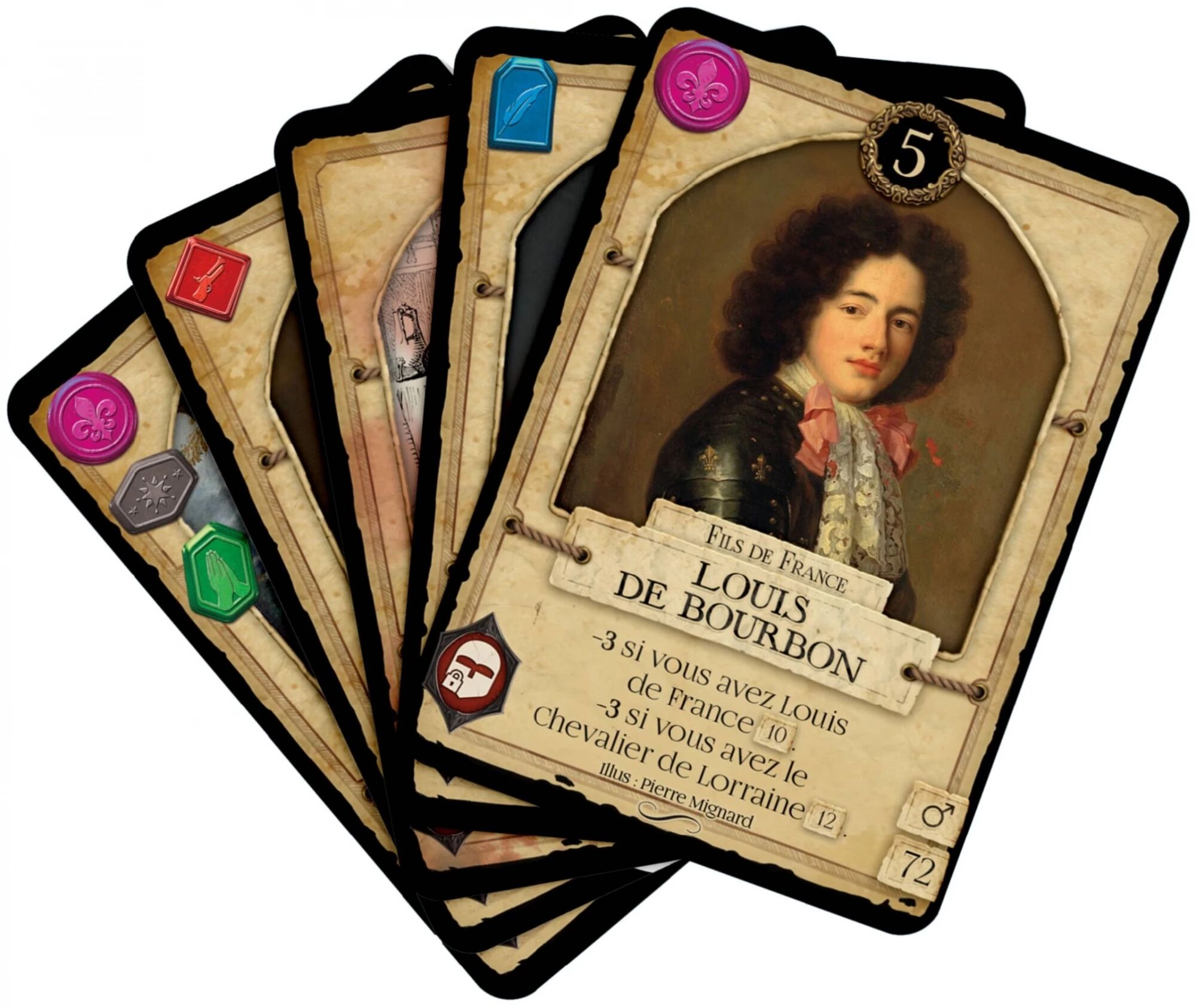 Avec l’extension L’Homme au Masque de Fer pour le jeu La Cour de Versailles, les intrigues de la cour prennent une nouvelle dimension. De nouveaux personnages emblématiques liés à l’une des plus grandes énigmes de l’histoire française font leur apparition, apportant davantage de richesse et de renouvellement aux parties.