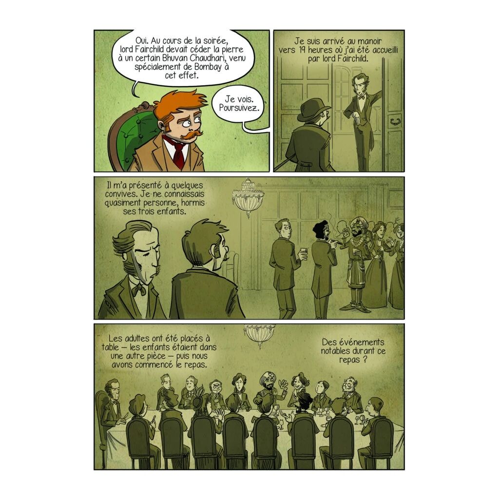 La soirée du magnat Lord Horace Fairchild tourne au drame : il se suicide, le précieux diamant La Lune Céleste disparaît, et son gendre est retrouvé empoisonné.